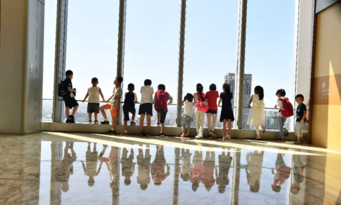 家長(zhǎng)們隨后陪同小朋友們來(lái)到3B的轉(zhuǎn)換大堂,在明朗的天空下遠(yuǎn)眺北京城。小朋友們都非常興奮,有的還興致勃勃地尋找自己的家在哪個(gè)地方,不住地指指點(diǎn)點(diǎn)。為了讓小客人們留下更多美好的回憶,寫(xiě)字樓部的劉學(xué)軍經(jīng)理還貼心地打開(kāi)了一處空租區(qū),請(qǐng)孩子們觀察西山、中央電視臺(tái)發(fā)射塔、故宮等景點(diǎn)。