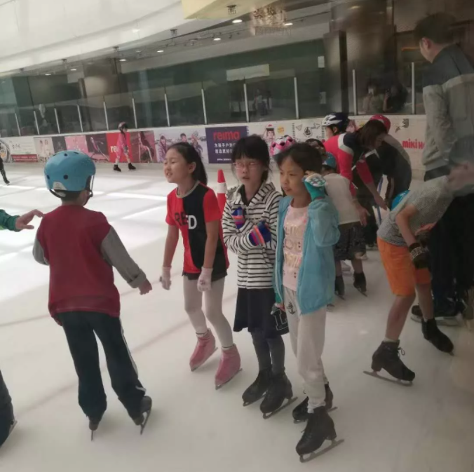 小朋友們緊接著來(lái)到國(guó)貿(mào)溜冰場(chǎng),感受冰上滑行的魅力。周力經(jīng)理特地為小客人們安排了單獨(dú)的更衣間和專(zhuān)門(mén)的練習(xí)區(qū)域,并請(qǐng)三位教練進(jìn)行了全程陪同。當(dāng)小朋友們或熟練或笨拙地出現(xiàn)在冰面上時(shí),家長(zhǎng)們紛紛舉起相機(jī),記錄下這些緊張又開(kāi)心的時(shí)刻。