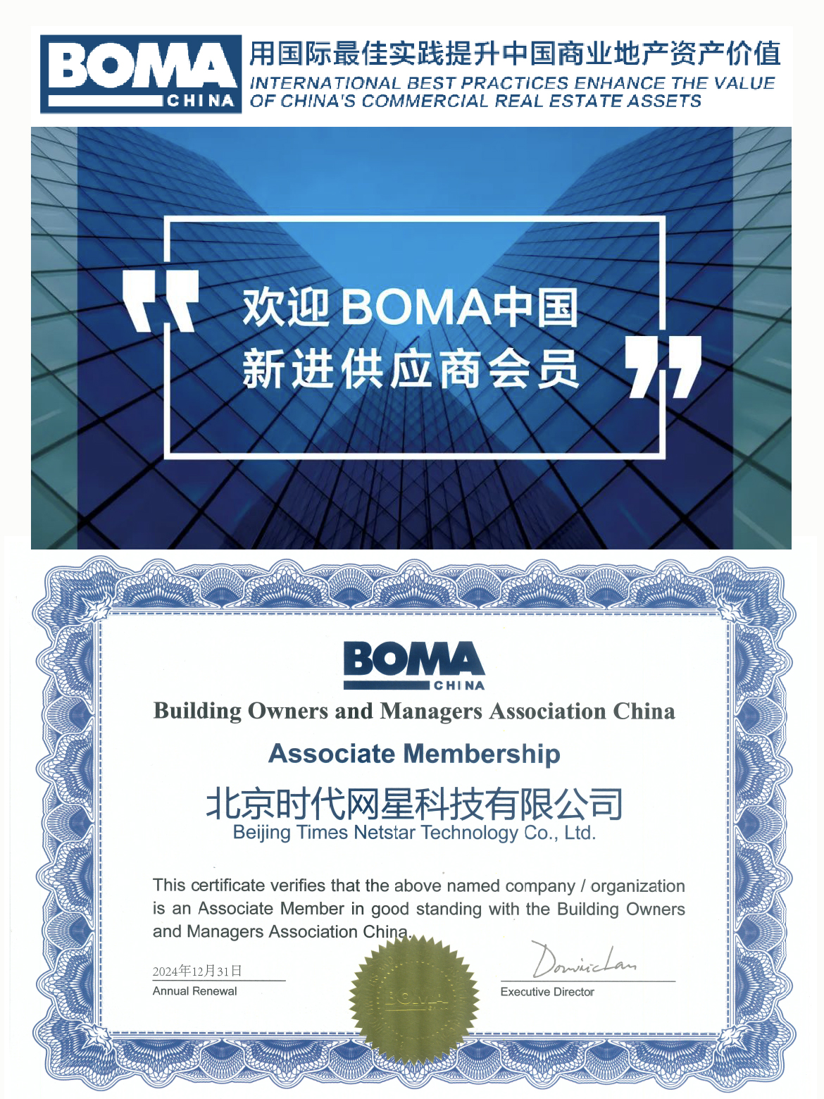 1月24日BOMA官宣:時(shí)代網(wǎng)星成為BOMA中國供應(yīng)商會(huì)員,為樓宇業(yè)主提供便捷可靠的數(shù)智化解決方案。
