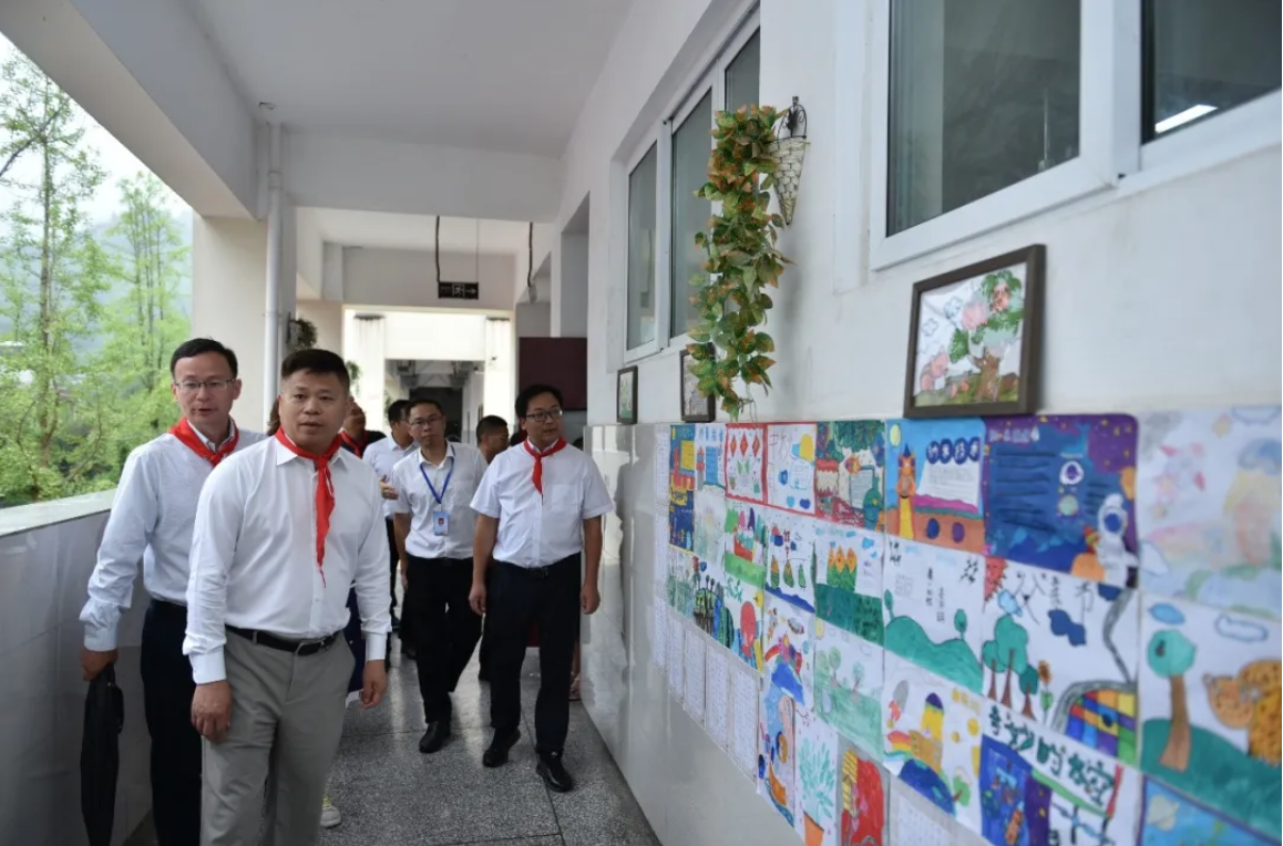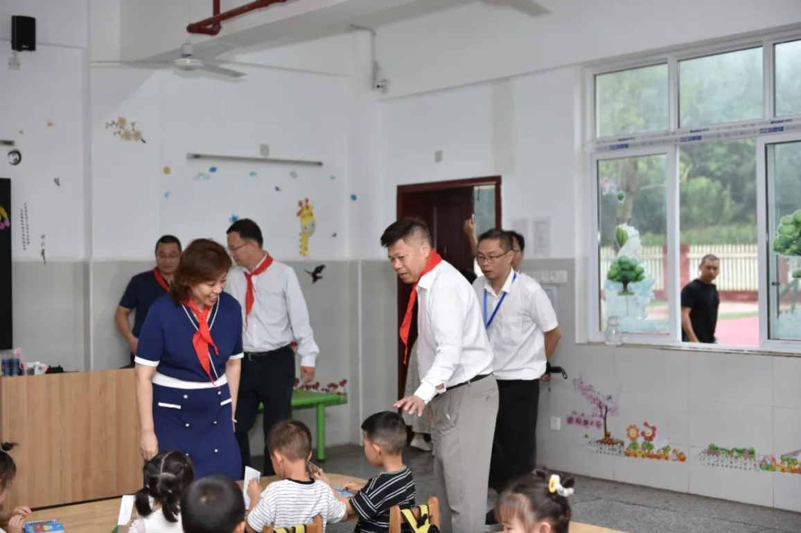 國貿(mào)中心成立40年來,在經(jīng)營業(yè)績不斷攀升的同時,始終堅持黨建引領,堅定履行企業(yè)社會責任。為進一步落實國貿(mào)小學幫扶計劃,2024年6月21日,中國國際貿(mào)易中心有限公司黨委副書記、國貿(mào)中心股份有限公司總經(jīng)理支陸遜,國貿(mào)中心黨委副書記、國貿(mào)中心有限公司副總經(jīng)理郎寬,工程部總監(jiān)、國貿(mào)小學名譽校長廖順雨一行,冒雨來到四川省宜賓市長寧縣硐底鎮(zhèn)中國國貿(mào)小學,看望師生并為學生捐贈校服和體育用品。長寧縣硐底鎮(zhèn)黨委書記梁超,長寧縣教體局黨組成員、副局長丁志成出席活動。