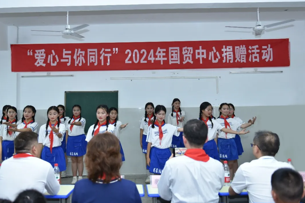 2019年6月,原長寧縣硐底鎮(zhèn)石埡小學因地震損毀,國貿(mào)中心捐資興建國貿(mào)小學,并劃撥專門款項用于解決國貿(mào)小學的“急、難、愁、盼”問題。近年來,國貿(mào)中心對學校的各方面建設發(fā)展給予了持續(xù)關注和投入,捐贈圖書、文具、電教設備、編程機器人、課桌椅并組織夏令營等。今年,應學校需求,為解決學生無統(tǒng)一校服的情況,國貿(mào)中心為學生們統(tǒng)一購置夏季校服,并為孩子們準備了文具禮包和零食大禮包等,同時,為豐富學生課余生活,再次為學校捐贈了乒乓球、羽毛球、足球、籃球等。
