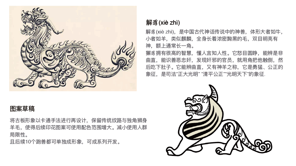 獬豸文創(chuàng)包——弘揚傳統(tǒng)文化同時兼?zhèn)淙粘K璧膶嵱霉δ?,將產(chǎn)品的文化藝術(shù)融入日常生活化場景,增強其使用與傳播價值。
